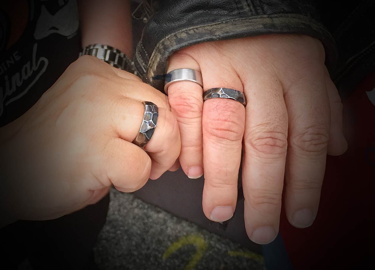 Diese Ringe sind kunsthandwerkliche Unikate! Sie werden mit viel Hingabe in zahlreichen Einzelschritten aus dem Rahmenrohr eines Motorrads gearbeitet.