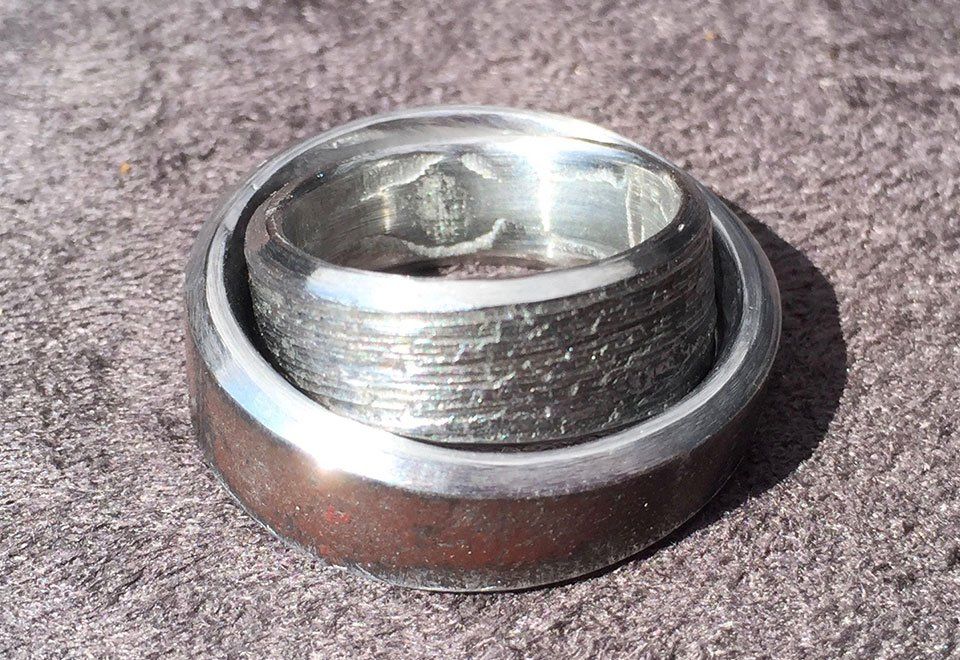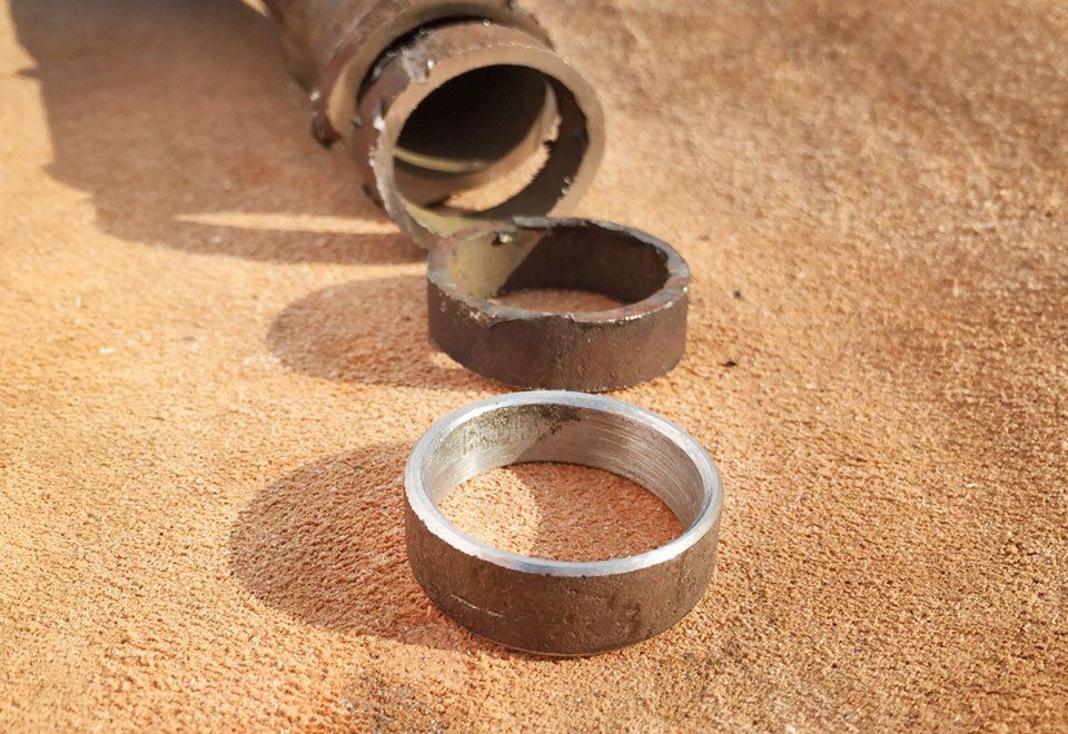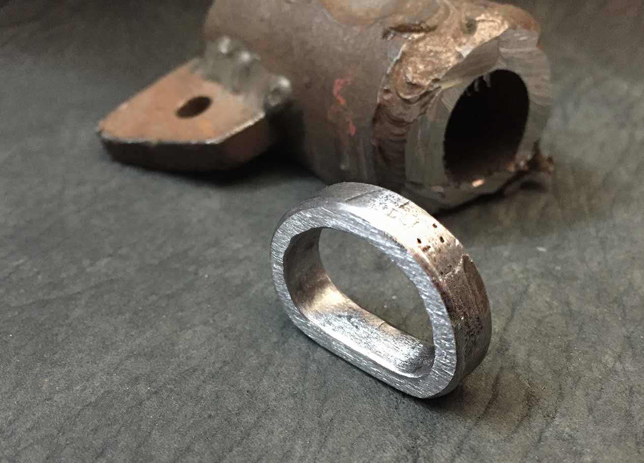 Diese Ringe sind kunsthandwerkliche Unikate! Sie werden mit viel Hingabe in zahlreichen Einzelschritten aus dem Rahmenrohr eines Motorrads gearbeitet.