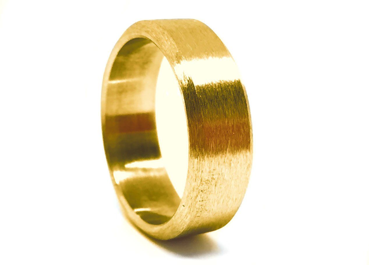 Jetzt gibt es endlich korrekten Schmuck für "zwangsgesteuerte" Mädchen und Jungs! Ich hatte das Glück einen noch verwertbaren Rahmen einer DUCATI 900 SuperSport unter die Flex zu bekommen. Erstmals 1976 baute DUCATI die 900SS mit 90° V2 und desmodromischer (zwangsgesteuerter) Ventilsteuerung. Hier nun als Ring, z.B. im matten Gold-Bronze-Ton des Originallacks, matt-gebürstet oder hochglanz-poliert. Und natürlich auch 24-Karat vergoldet! Der Hammer!